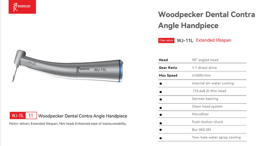 Woodpecker 1:1 Electric Handpiece Contra Angle w/ Fiber Optic And Push Button Chuck