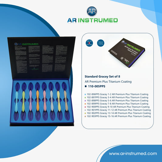 Chicago Midwinter Special SAVE 30% SaleAR Instrumed Gracey Curettes Set of 8 – Titanium Tips with Silicone Handles