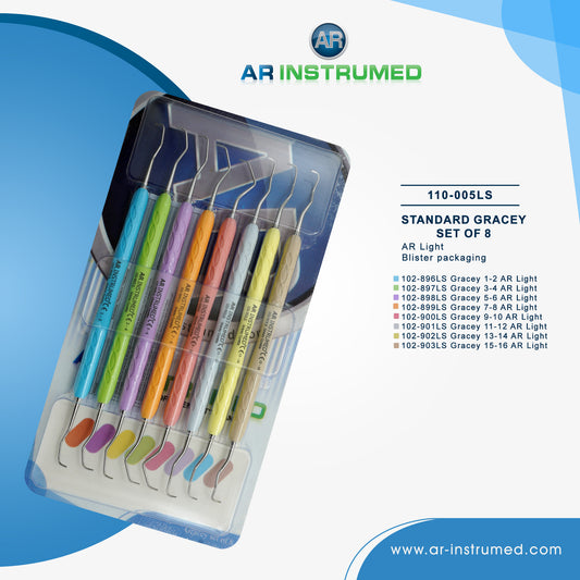 SAVE 20% at CheckoutAR Instrumed Standard Gracey Currettes Set of 8 - AR Light Silicone Handles