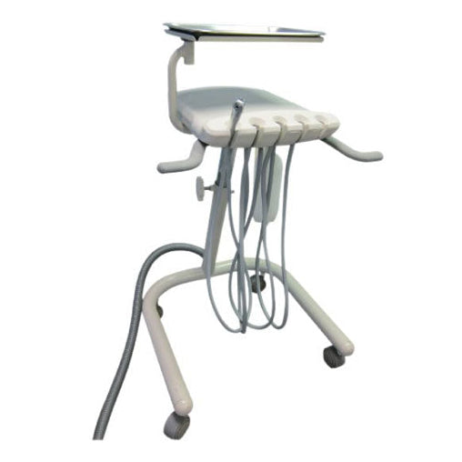 The A-Series Doctor's Cart is a mobile instrument delivery system suited to meet your basic dentistry needs. It has a great air coolant flow control with a self-contained city/clean water selector. Very compact with smooth rolling dual wheel casters makes this streamlined design easy to use and control in the operatory. Its straightforward aseptic tubing and purge system for handpieces are efficient and high quality.