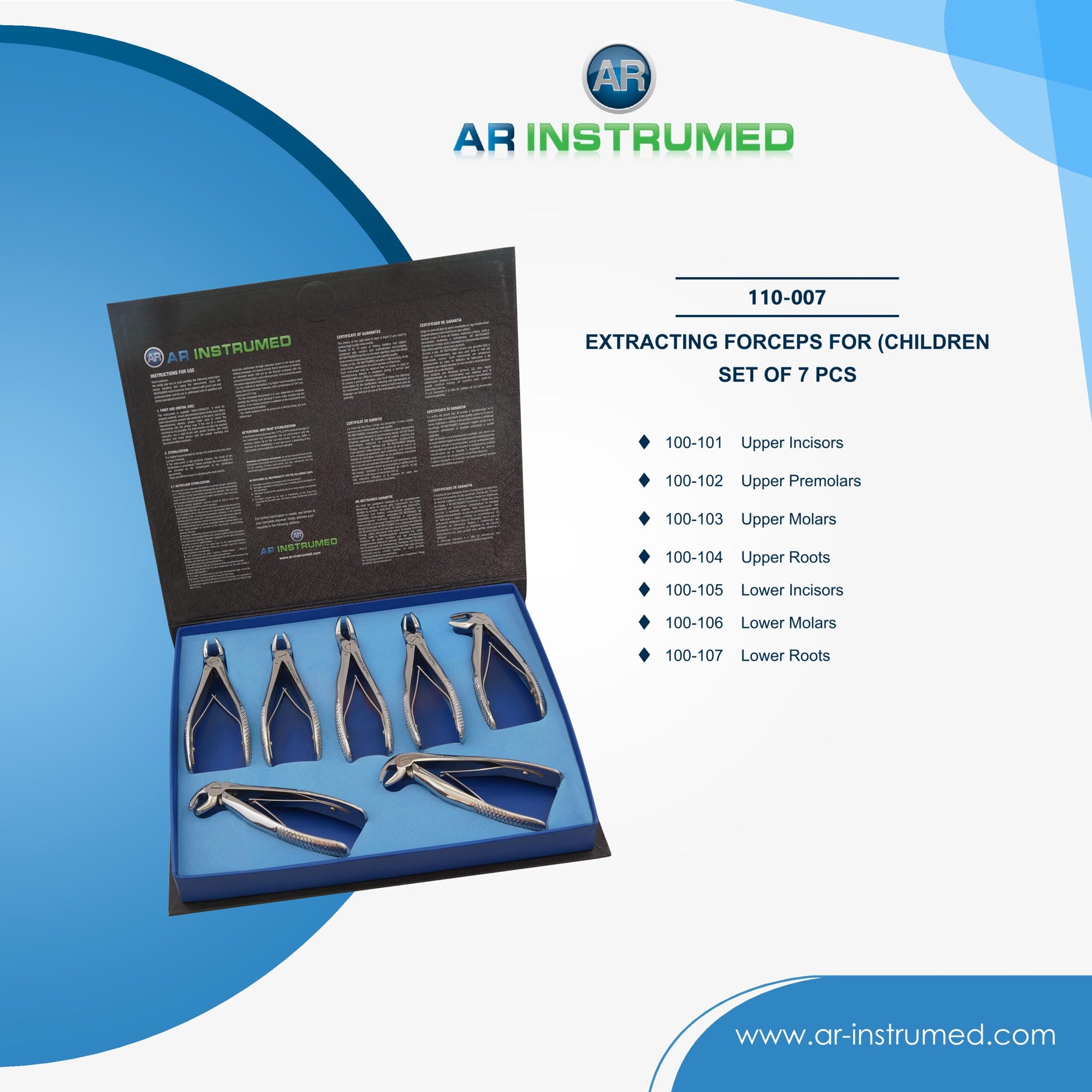 AR Instrumed Extracting Forceps for Children Set of 7Pcs