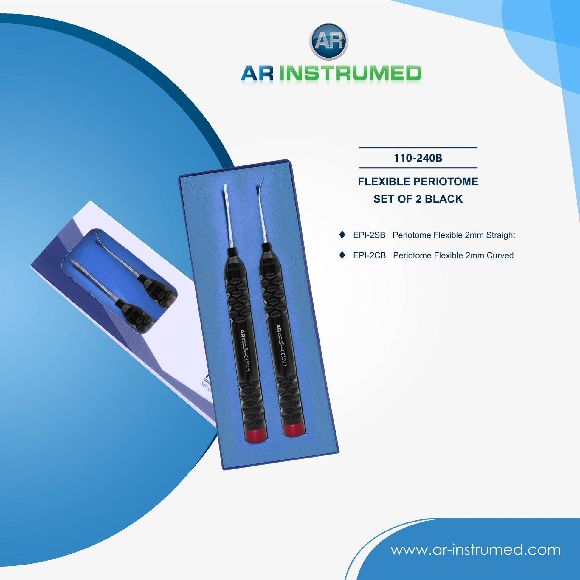 AR Instrumed Flexible Periotome Kit and Root Extractor Set of 2 Black