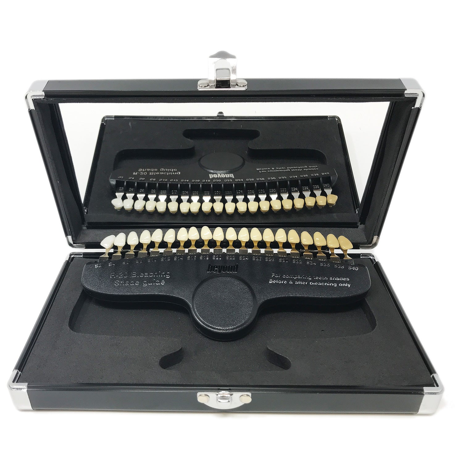 Accurately measure teeth whitening results with the BEYOND® 3D Teeth Whitening Shade Guide. This professional-grade guide includes 20 clearly numbered shade tabs with laser-engraved identifiers for lasting readability. Tabs are suitable for heat sterilization in an autoclave (up to 140°C) or cold disinfection, ensuring hygiene and safety. Conveniently packaged in a mirror case, this shade guide is essential for precise, quick, and secure shade assessment, making it a trusted tool for dental professionals to clearly demonstrate whitening progress and results to patients.