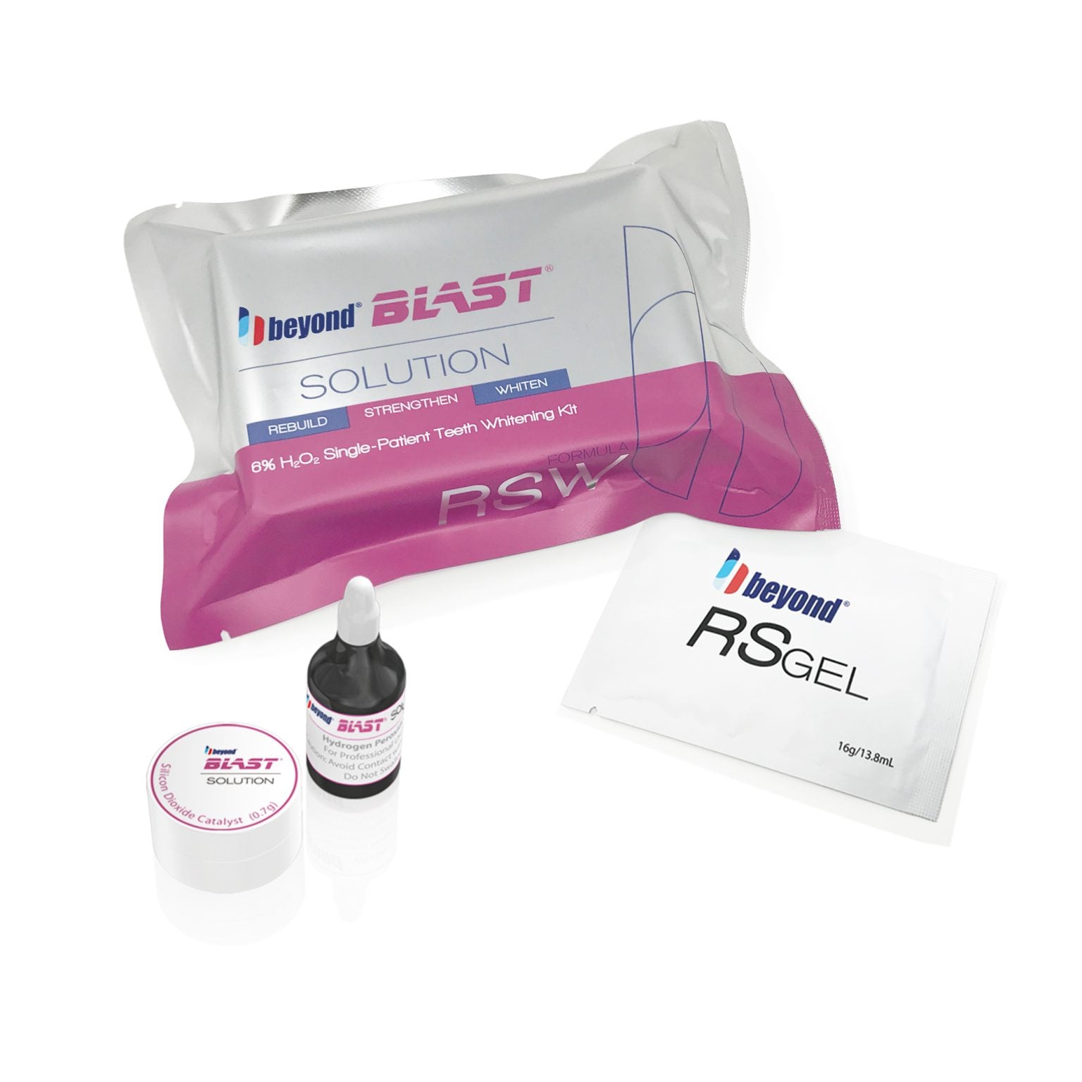The BEYOND® Blast® Solution Treatment Kit offers dental professionals a powerful yet gentle solution to tackle stubborn tetracycline and severe stains. Featuring a manual-mix whitening paste powered by a robust 35% hydrogen peroxide formula, combined with an RS Gel enriched with potassium nitrate and hydroxyapatite, it reduces sensitivity and promotes enamel remineralization. Ideal as a pre-treatment to significantly boost whitening effectiveness, this comprehensive kit includes individually packaged essentials for safe and effective use. Compatible with all BEYOND® Whitening Kits, it ensures consistent clinical results and enhanced patient comfort.