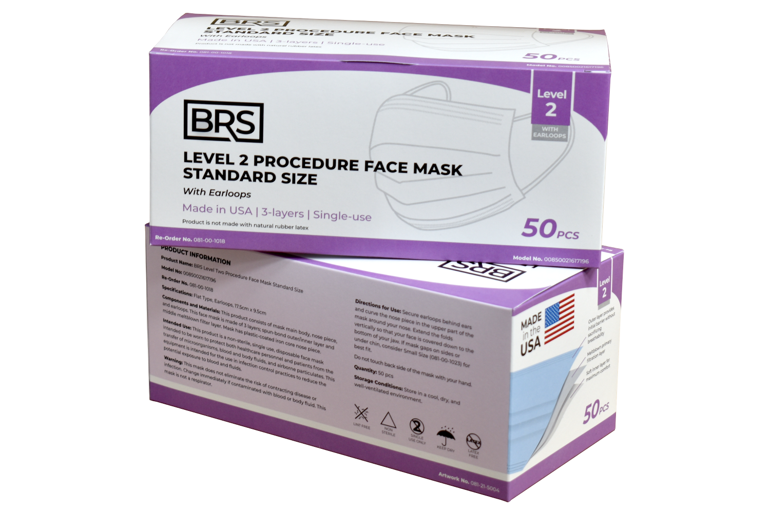 BRS Earloop Face Mask, Level 2, Standard Size, Case of 600 Masks, Blue