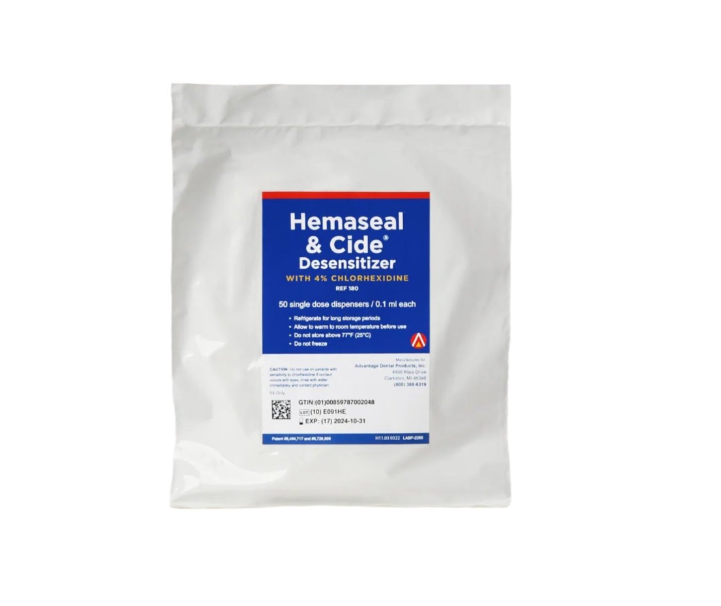 Hemaseal & Cide® is THE glutaraldehyde-free, chlorhexidineâbased formula for all direct bonding and cementation procedures. 20-year clinical track record of desensitizing, improved bond strength, reduced micro-leakage and TWICE the antimicrobial activity
