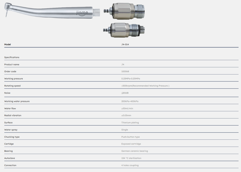 Jinme J4-MUQ Mini Head High Speed Handpiece - 4 Hole Swivel & NSK Compatible